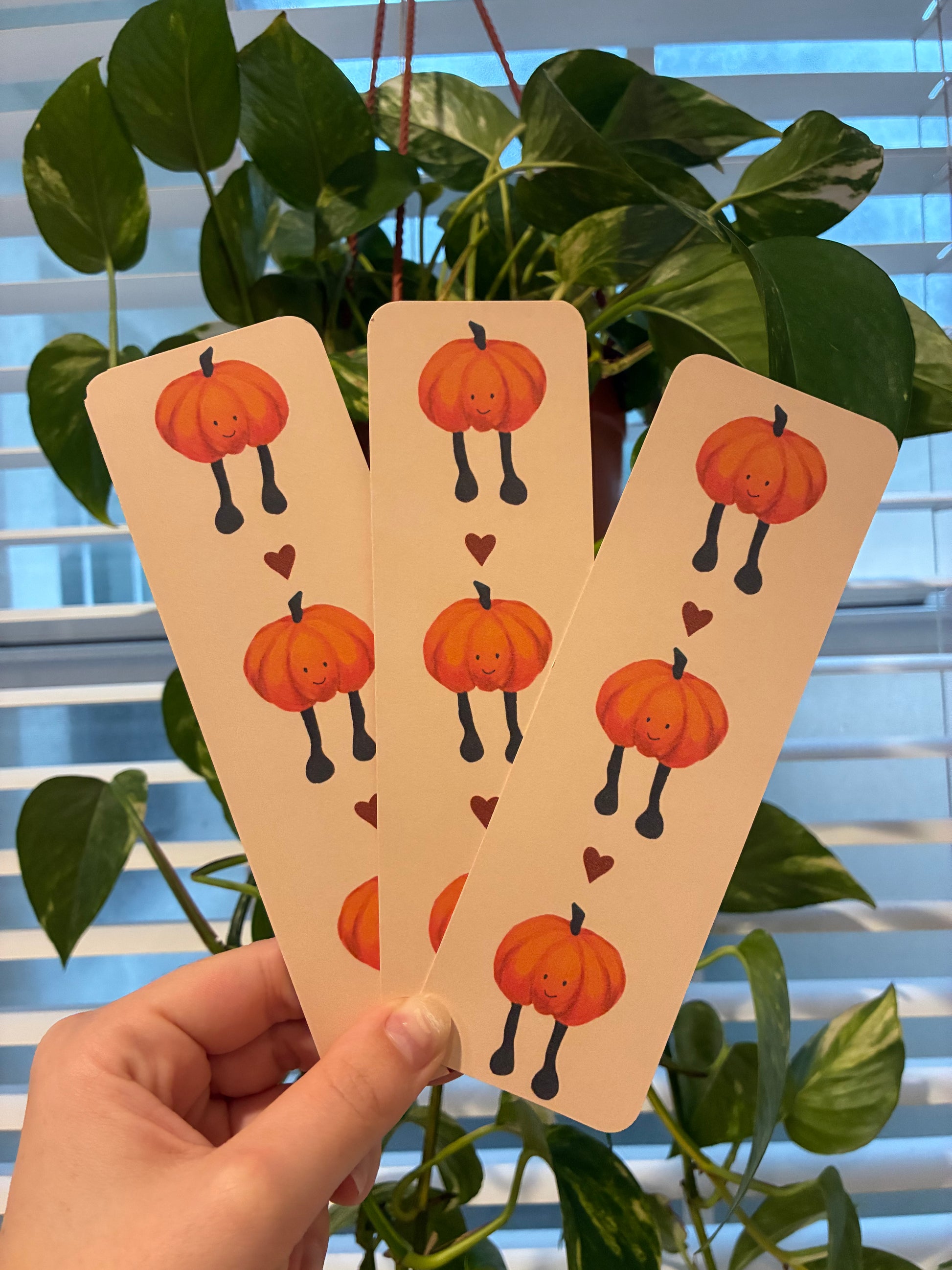 - 2” x 7” double sided matte bookmark feature the pumpkin guy.